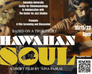 In collaboration with the Center for Ethnomusicology, the Center for Jazz Studies welcomes filmmaker ʻĀina Paikai, who brings the Hawaiian soul and spirit to Colombia University. The award-winning director will showcase his Oscar qualifying short-film in NYC to share the story of Hawaiian legend, George Helm. Set in the 1970’s Hawaiian sovereignty movement, this based-on-a-true-story biopic, brings the heart of the Hawaiian musician to the big screen with the intention of introducing this great indigenous leader to the outside world. In addition to the short-film, Paikai will share about his process of making the film with the Helm ʻohana, as well as share archival footage of George himself, so that the audience can directly hear from the voice that inspired a revolution of consciousness in Hawai’i.